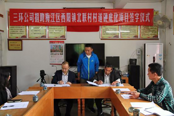 这是三环在积极响应市知识产权局民营企业参与扶贫开发号召后,做出的实际行动,致力于为社会公益事业贡献一份力量。该项目实施后,将完成村道硬化的“最后一公里”,实现全村所有自然村通水泥路。