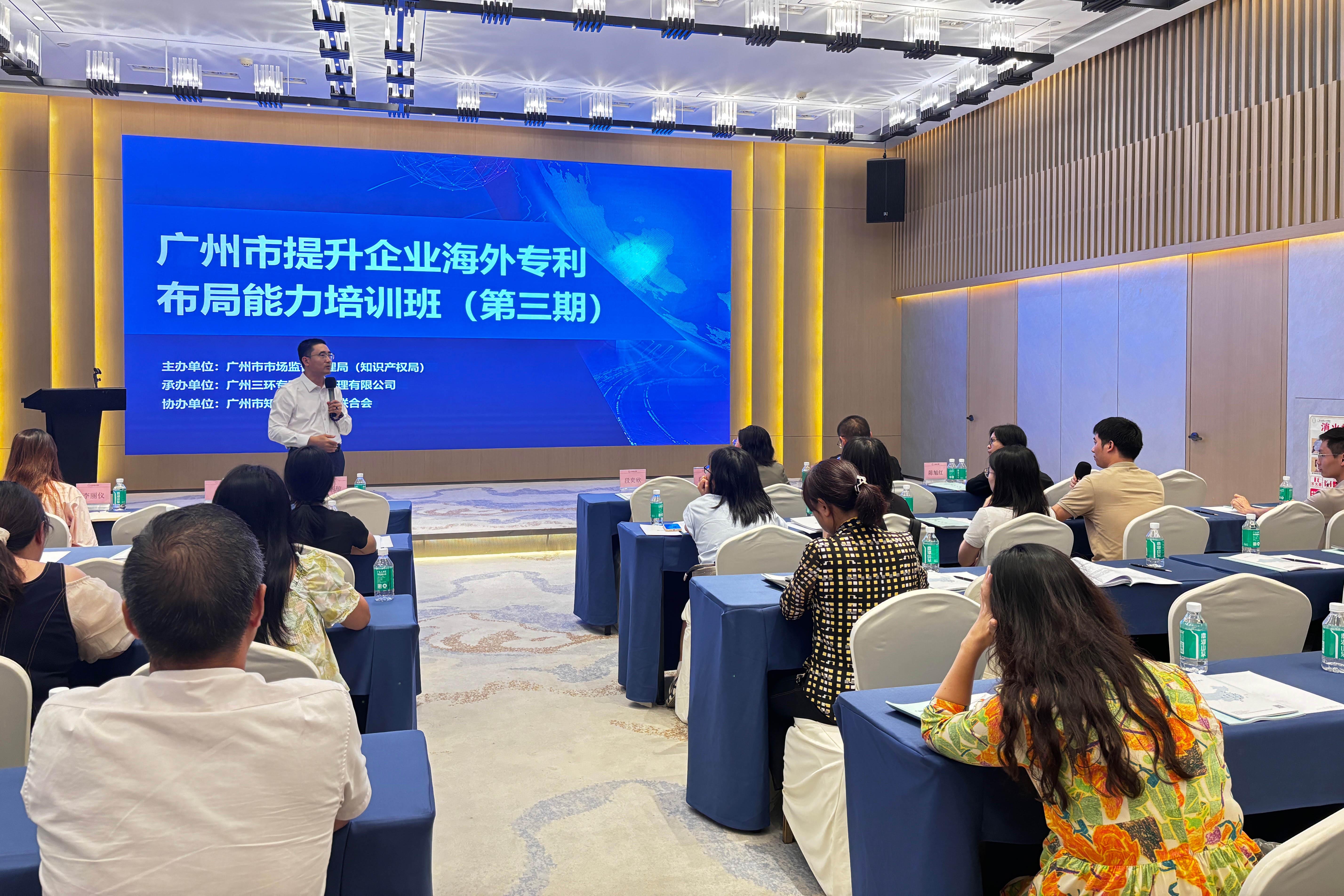 6月25日下午,由广州市市场监督管理局(知识产权局)主办、广州三环专利商标代理有限公司承办的“提升企业海外专利布局能力培训班(第二期)”在广东地质山水酒店顺利举办。